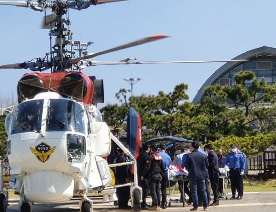 이 분들을 구하기 위해 제주도 마라도에서 해상 헬기가 출발하였습니다. 하지만 30~40초가 지난 후, 헬기가 추락했습니다. 항공대 승무원 4명 중 2명이 숨졌고, 1명이 실종되었습니다. 나머지 1명은 구조돼 생명에는 지장이 없는 상태로 알려졌습니다.
